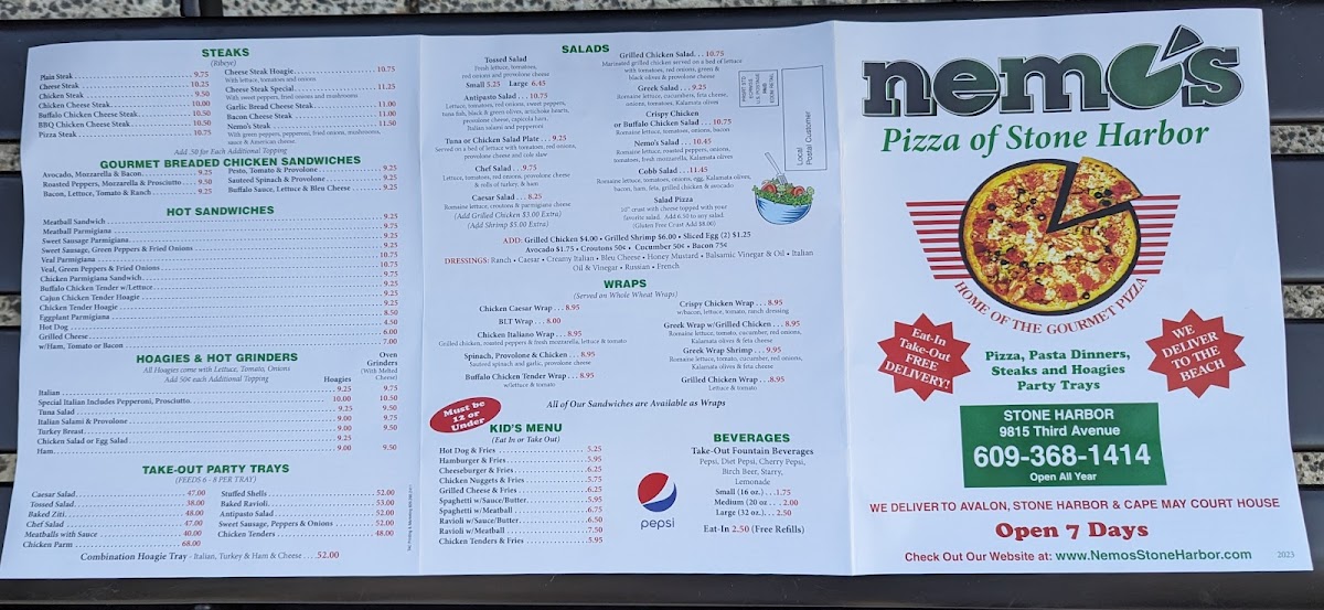Welcome to Nemo's Pizza Of Stone Harbor, a cherished local gem located at 9815 3rd Ave, Stone Harbor, NJ. Known for its delectable offerings, Nemo's presents an array of delightful pizzas, hearty dinner entrees, and refreshing beverages. The menu features customizable pizzas with rich sauces and toppings that cater to every palate.